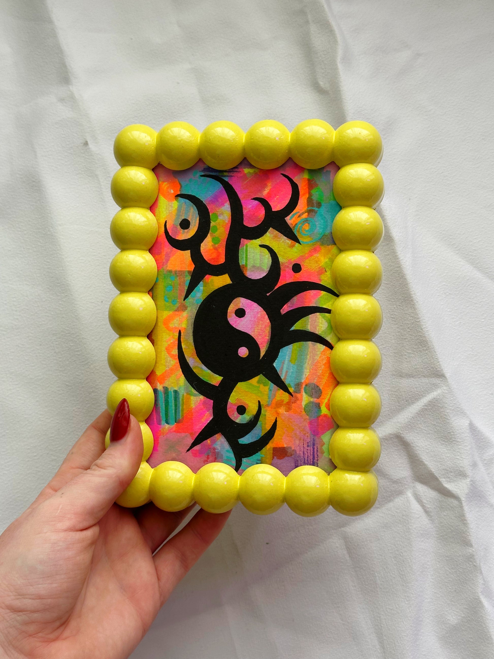 The frame comes with a kickstand so you an easily display this somewhere in your home.