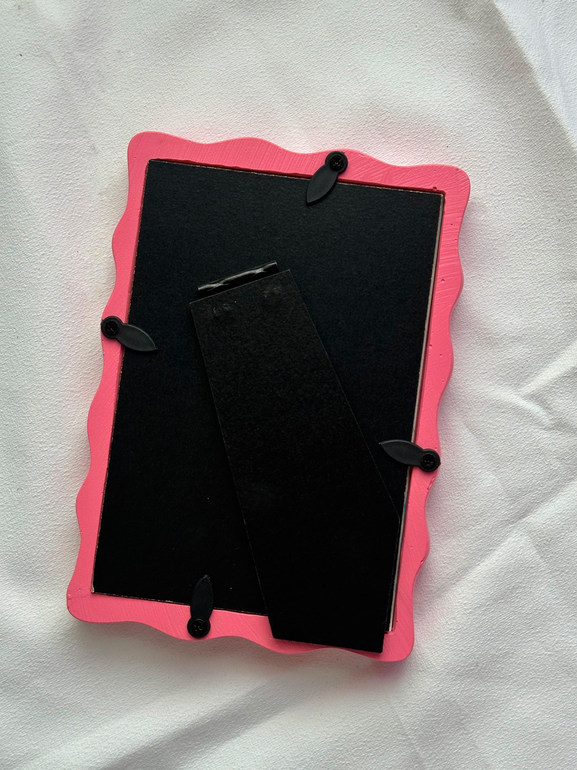 The frame comes with a kickstand so you an easily display this somewhere in your home.