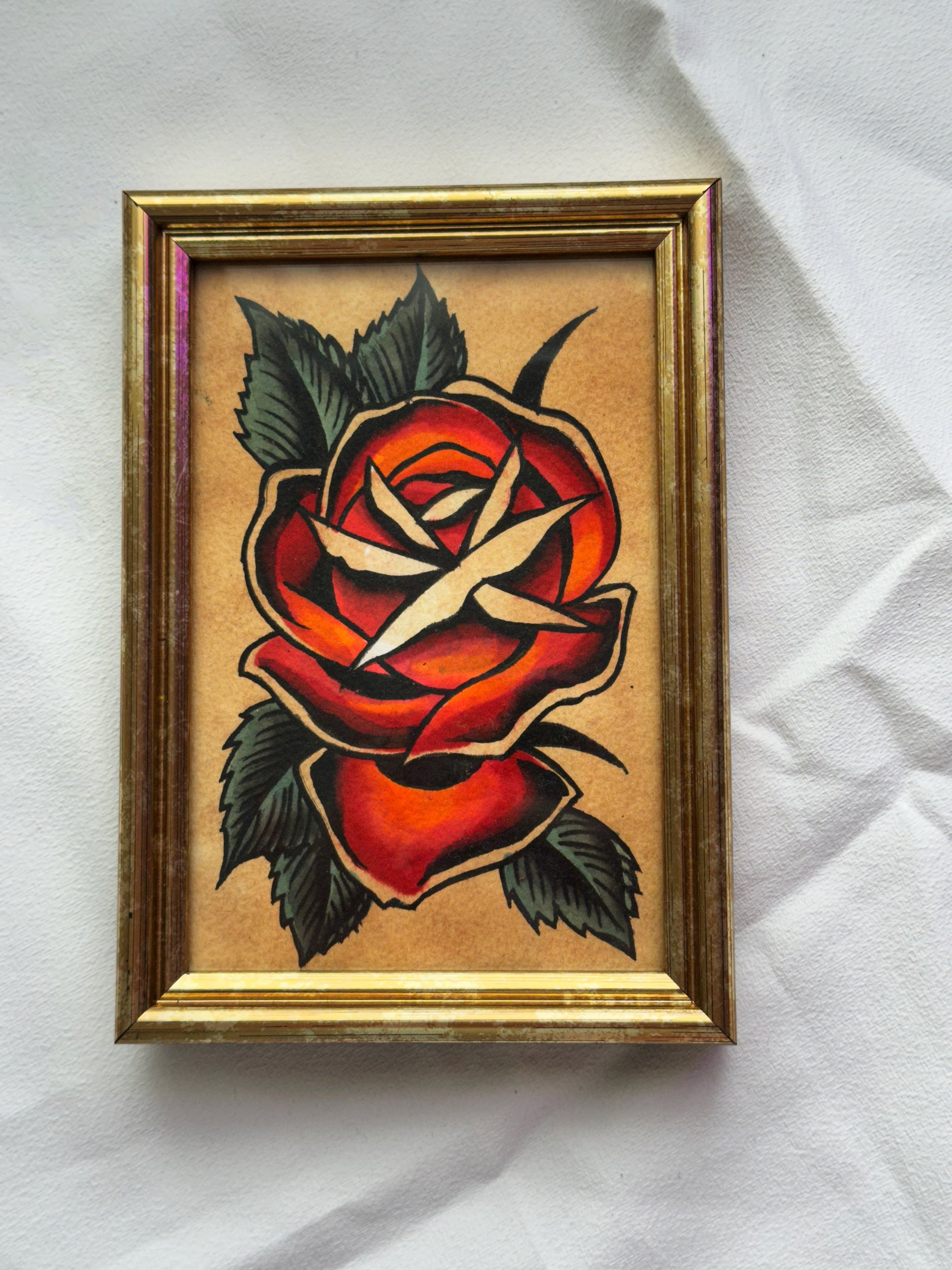 This one of a kind original painting comes set in a classy golden frame.