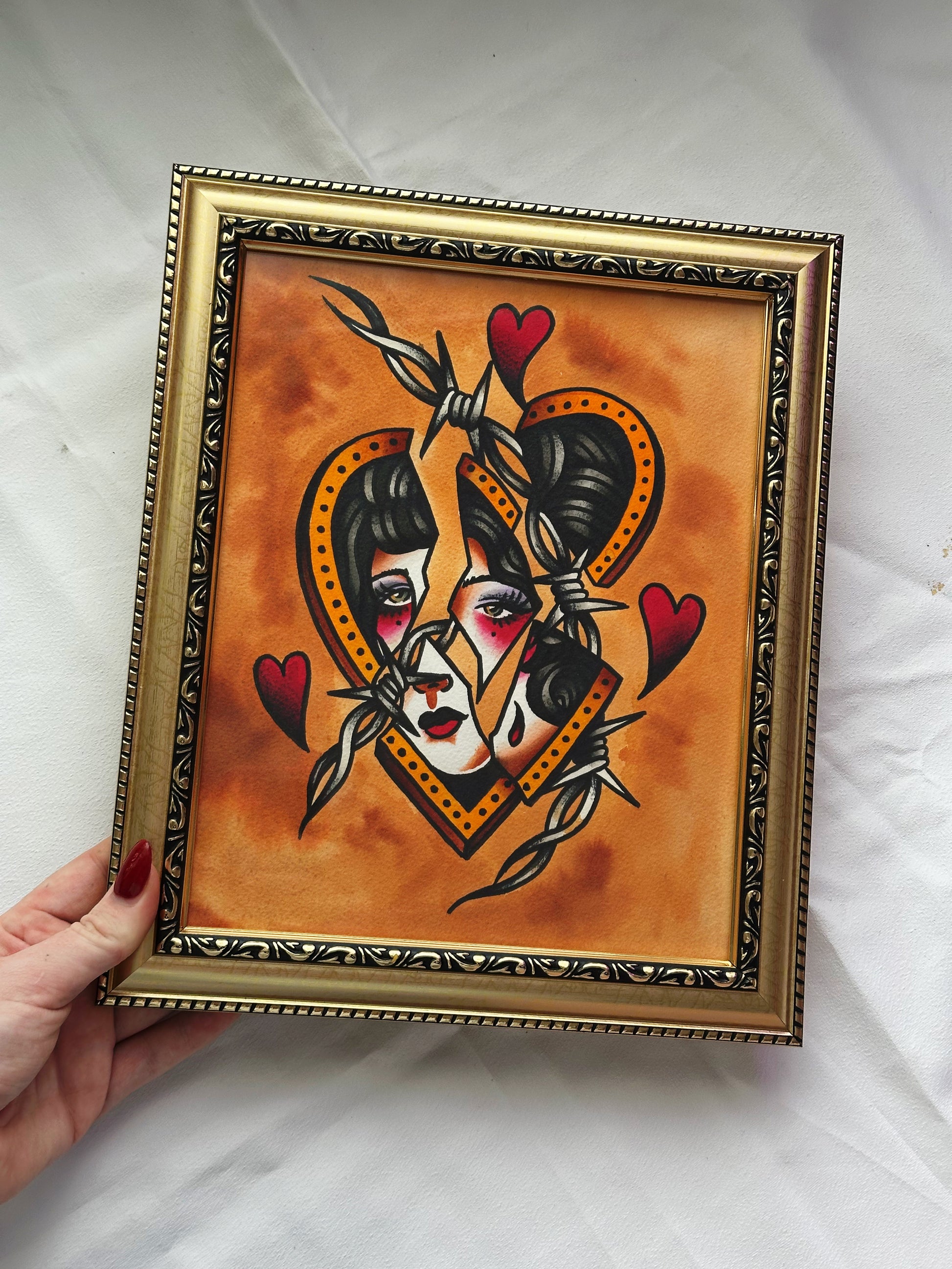 This one of a kind original painting comes set in a beautiful gold ornate frame.